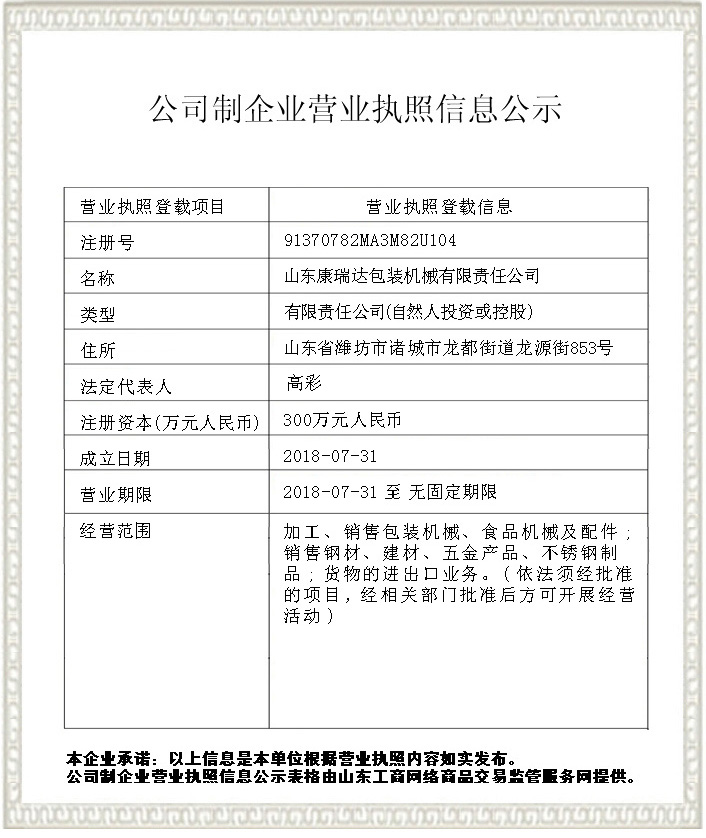 歡迎光臨山東康瑞達包裝機械有限責任公司的網站!在線服務熱線:18206369188